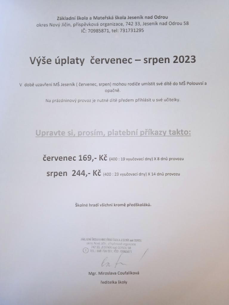 Výše úplaty na prázdniny