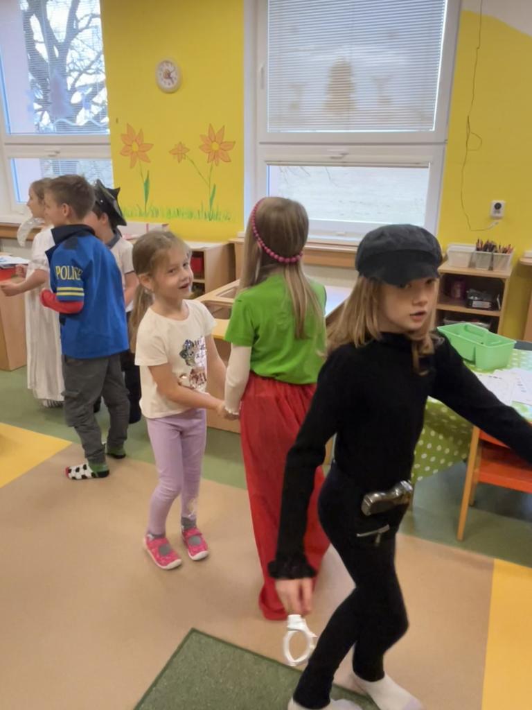 Masopust u nás proběhl ve středu 11. 2. 2026. Už během předchozího týdne si děti vyráběly nebo přinášely své masky a postupně se seznamovaly s masopustními tradicemi. V našem průvodu se tak objevil nejen medvěd a laufr, ale také třeba kobyla, makové panenky, řezník, kominíci, .. .