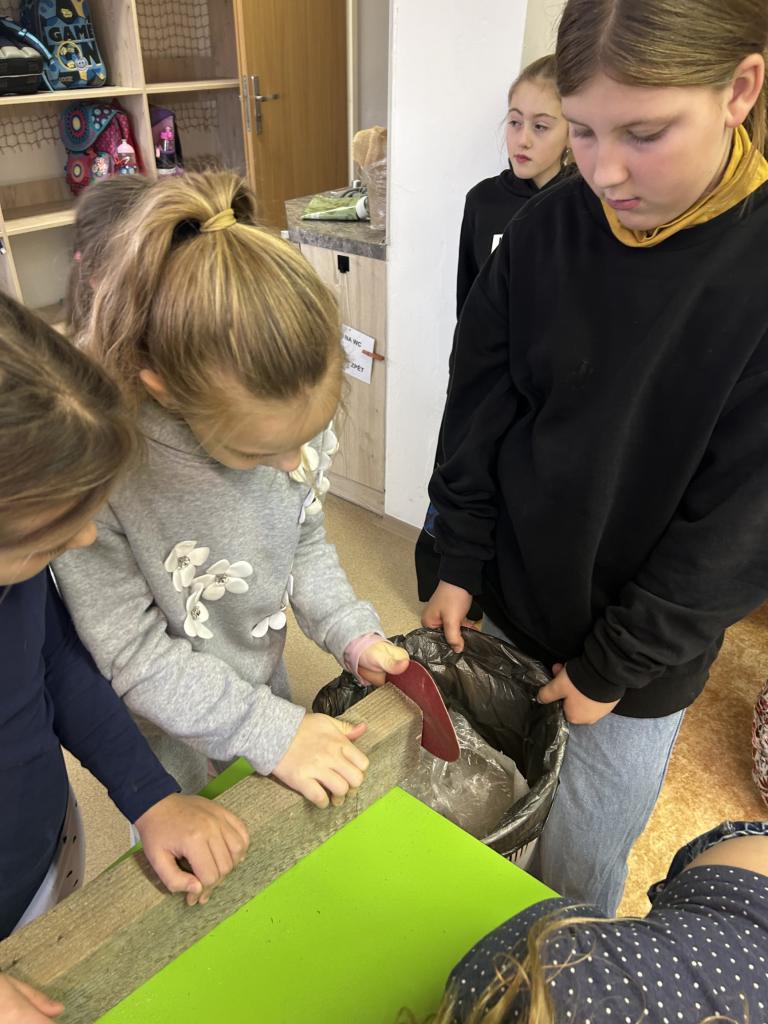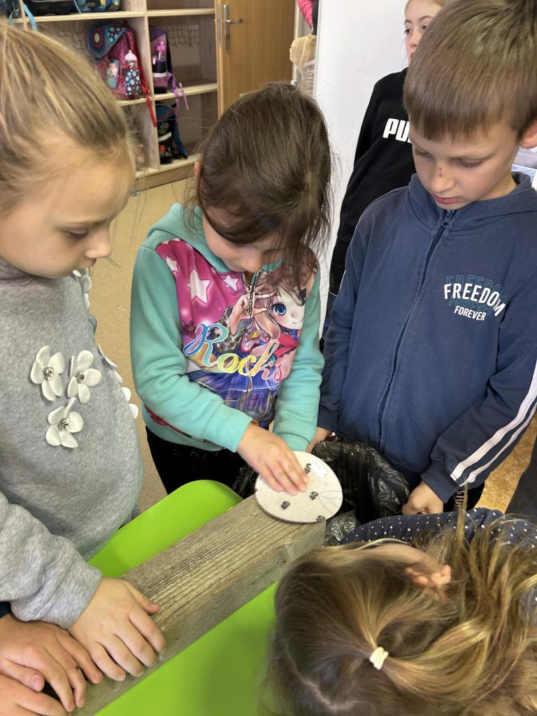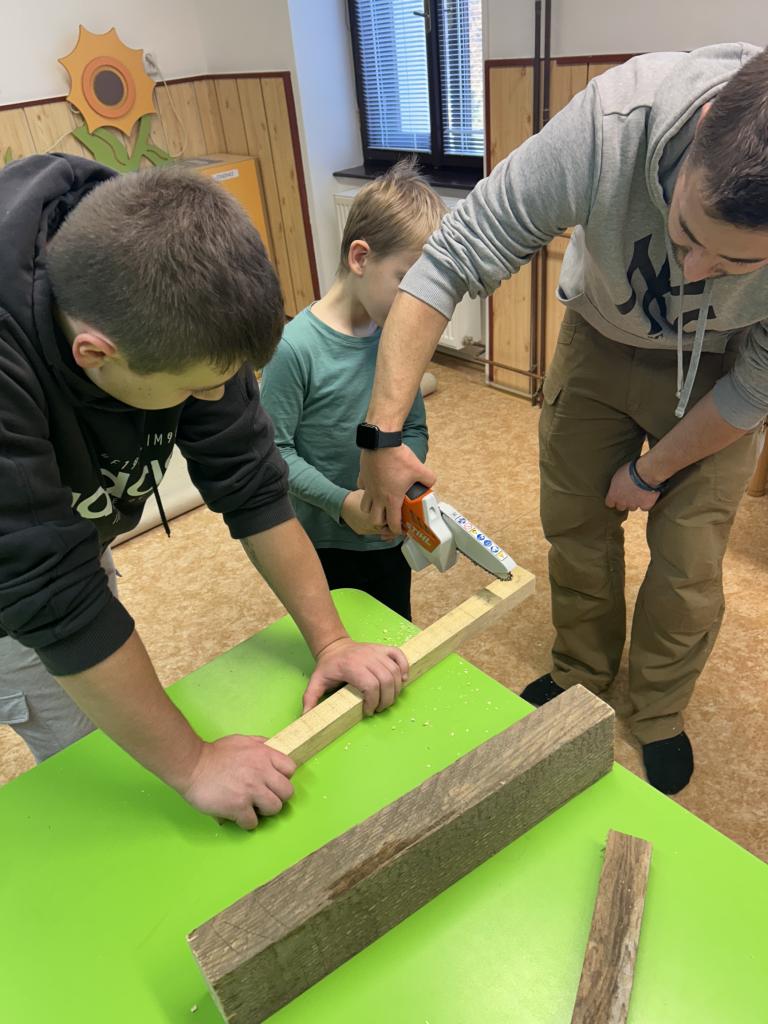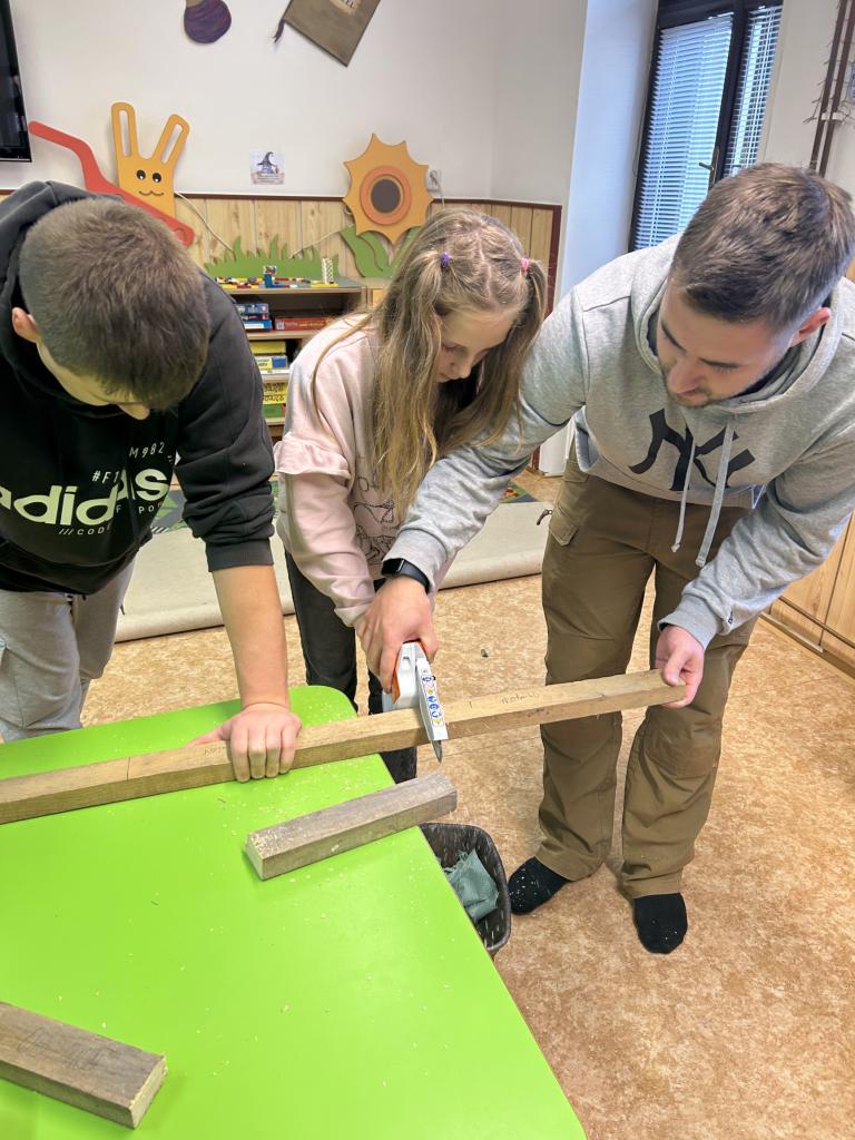 Děti si s pomocí Pepy a Honzy vyrobily konstrukci těl sobíků. Bylo krásné sledovat, jak jsou děti šikovné a jde jim práce od ruky. Sobíci, kteří dostanou ještě jehličnatý kabátek, budou zdobit vchody školy a vítat tak všechny, kteří do budovy vejdou, nebo jen projdou kolem.